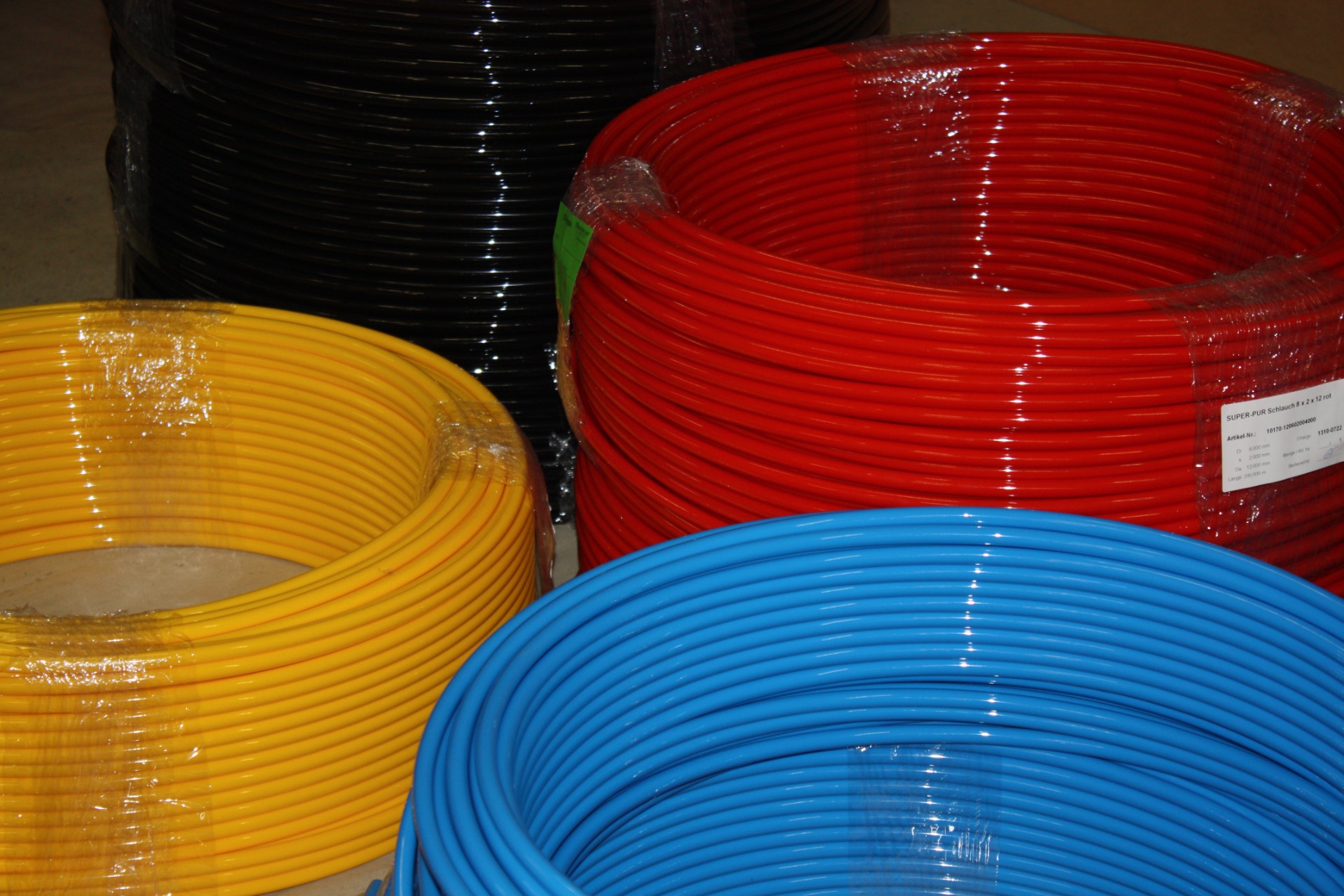 Een uitgebreid gamma van PU en PA slangen in verschillende kleuren en afmetingen van 4mm buitendiameter tot 16mm